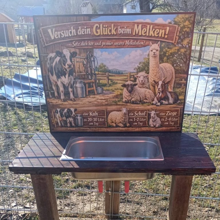 An unserer Melkstation könnt ihr spielerisch ausprobieren, wie man ein Schaf oder eine Ziege melkt. Dabei erfahrt ihr auch, wie viel Milch diese Tiere geben und viele spannende Fakten rund ums Melken.